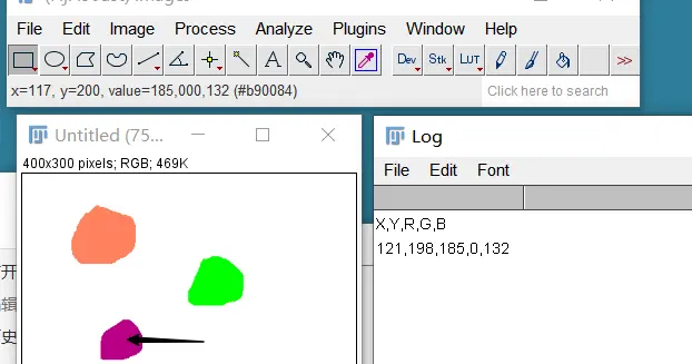 虽然在ImageJ状态栏中会直接显示当前鼠标所在图像的位置以及颜色信息,当如果要基于这些信息进行许多后续操作,我们就需要提取这些信息。为此,可以使用下面这段ImageJ Macro(一些built-in的函数,可以访问ImageJ的Documentation)。
