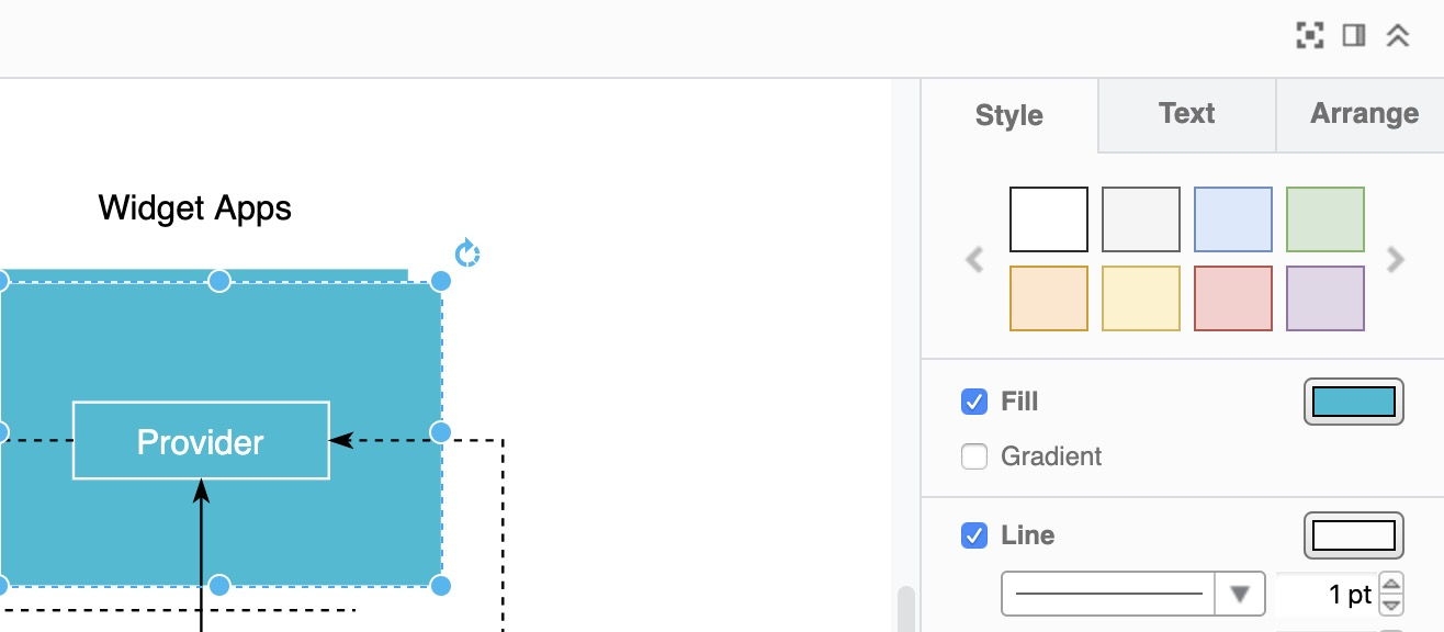 平时我在使用的时候,有个很棘手的问题,就是我基本不会配色,或者配色出来非常难看,draw.io 会提供一些颜色供你选择,我觉的这个对我这样的挺实用的,并且我真的觉得挺好看的,对于颜色选择有困难的是个福音.