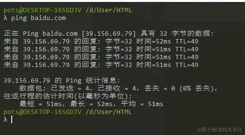 baidu.com对应什么ip,ping一下就行了,如上图。