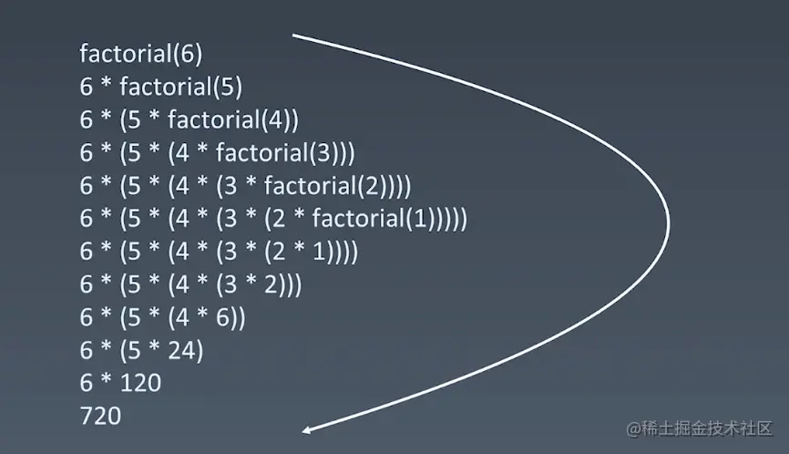 以下图示展示了阶乘递归的运行过程: