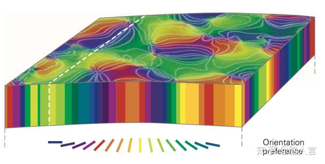 所谓的视觉CPU,就是处理视觉信息的视皮层,而蒙眼貂的视皮层有何特殊?先了解一下视皮层的“方向选择性”(orientation selectivity, OS)这一概念。视皮层上的神经元,有的只对上下垂直方向的视觉信号有反应,有的只对与水平方向的视觉信号有反应,通常将这类神经元的特性称之视觉信号的方向选择性。