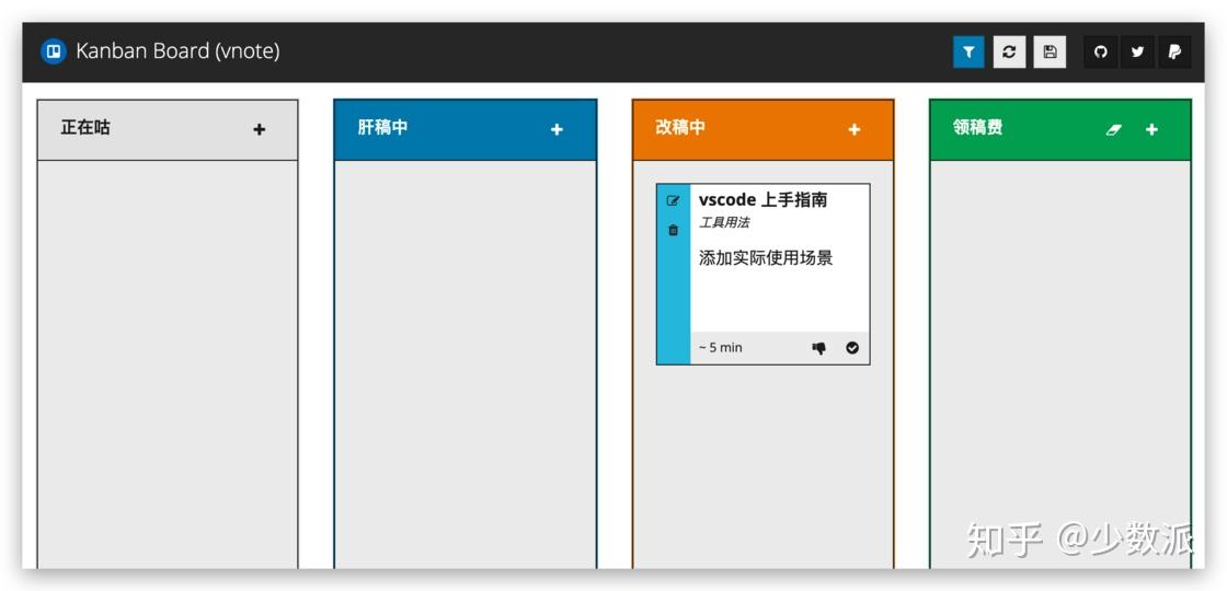 只有 TODO 功能或许不够过瘾,如果能做成看板的形式就更好了。嗯,一个插件 Kanban 基本满足需求。