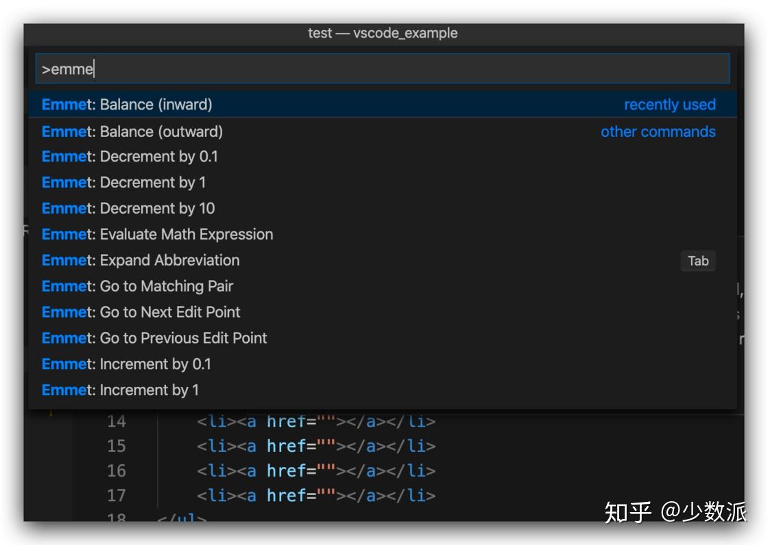 除了在编辑时进行代码展开,借助命令面板还可以是实现 Emmet 的很多其他操作,例如缩写包围、删除和更新标签等等。你可以在官方文档中查看更多信息。