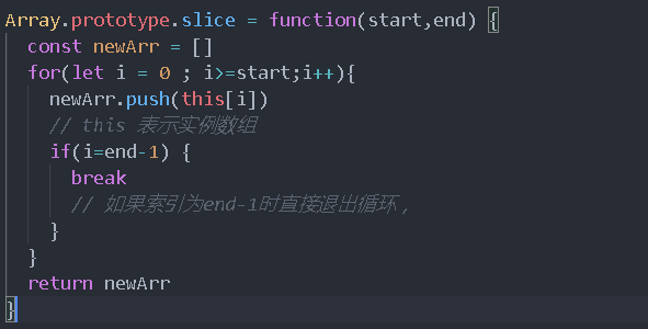 我们自定义构造函数时,一般将一些公有的方法放到原型对象上,slice方法也不例外,我们来猜想一下Array.prototype.slice.(start,end)它内部的实现机理。