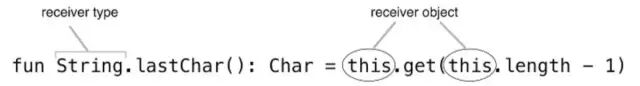 接收器类型是扩展定义的类型,而接收器对象是这个类型的实例。调用方式跟普通的函数调用方式一致: