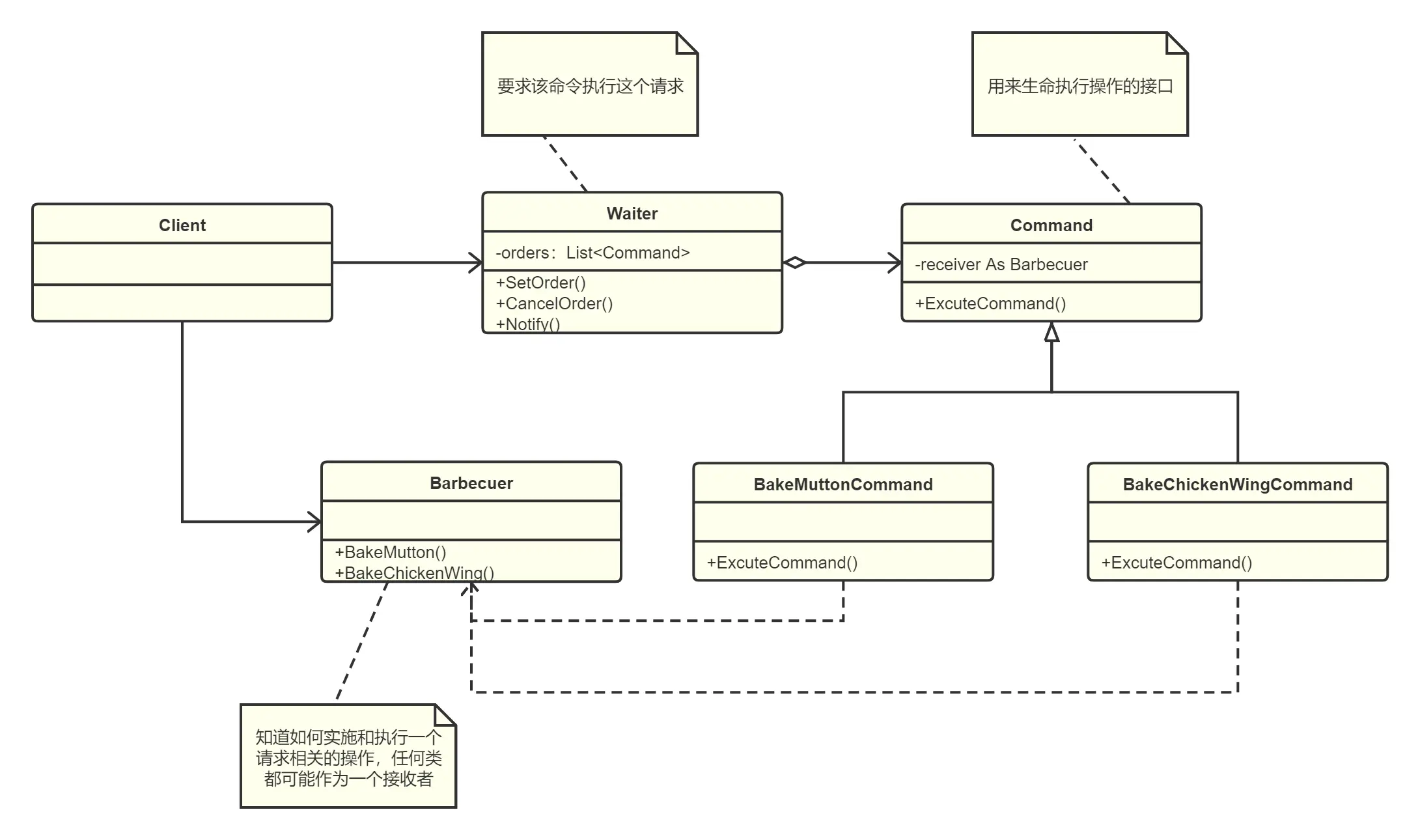 - 由于加进新的具体命令类不影响其他的类,因此增加新的具体命令类很容易。