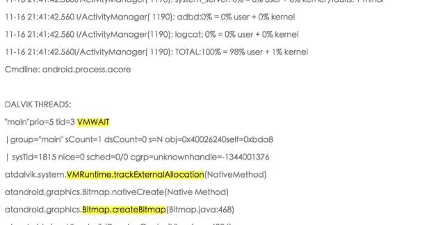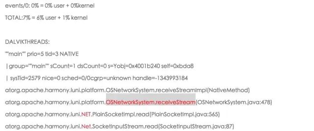 DALVIK THREADS:(mutexes: tll=0tsl=0 tscl=0 ghl=0 hwl=0 hwll=0)"main" prio=5 tid=1NATIVE | group="main" sCount=1 dsCount=0obj=0x2aad2248 self=0xcf70 | sysTid=21404 nice=0 sched=0/0cgrp=[fopen-error:2] handle=1876218976 at android.os.MessageQueue.nativePollOnce(Native Method) at android.os.MessageQueue.next(MessageQueue.java:119) at android.os.Looper.loop(Looper.java:110**) at android.app.ActivityThread.main(ActivityThread.java:3688) at java.lang.reflect.Method.invokeNative(Native Method) at java.lang.reflect.Method.invoke(Method.java:507) at com.android.internal.os.ZygoteInit$MethodAndArgsCaller.run(ZygoteInit.java:866) at com.android.internal.os.ZygoteInit.main(ZygoteInit.java:624) at dalvik.system.NativeStart.main(Native Method)