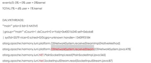 2.如果TOTAL很小,则说明线程被阻塞了,主线程在等待下条消息的进入,任务在等待时anr。