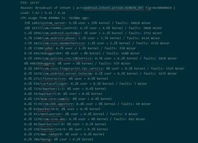 1.如果TOTAL的和接近100,有可能是因为当前使用的app占用的cpu太高,导致系统将你的杀死。