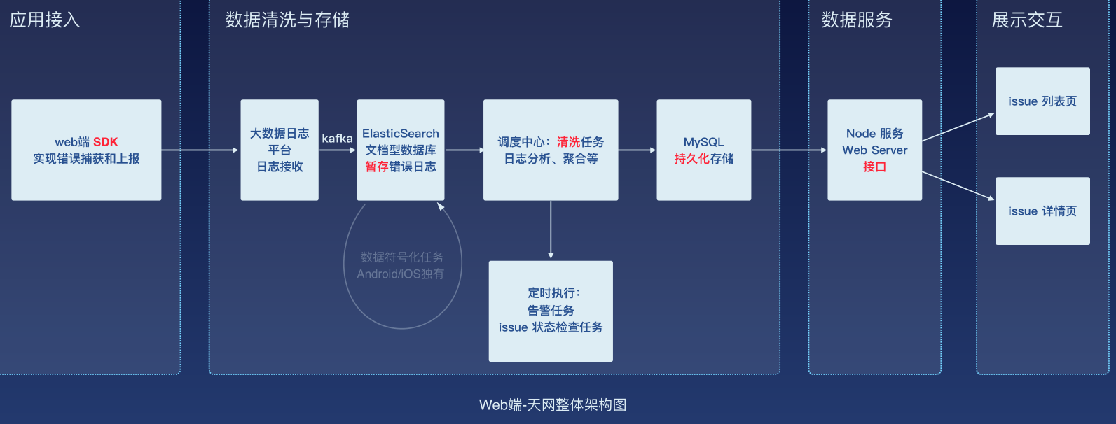 错误上报——数据清洗——数据持久化——数据可视化——监控告警