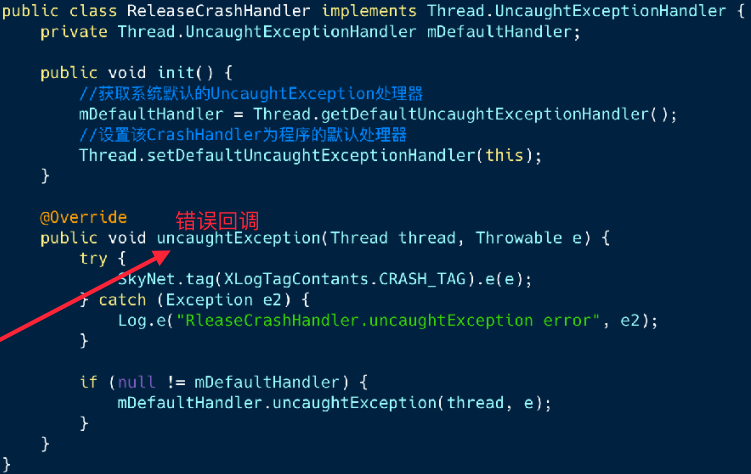 Thread.UncaughtExceptionHandler 接口,通过 uncaughtException 方法获取崩溃错误信