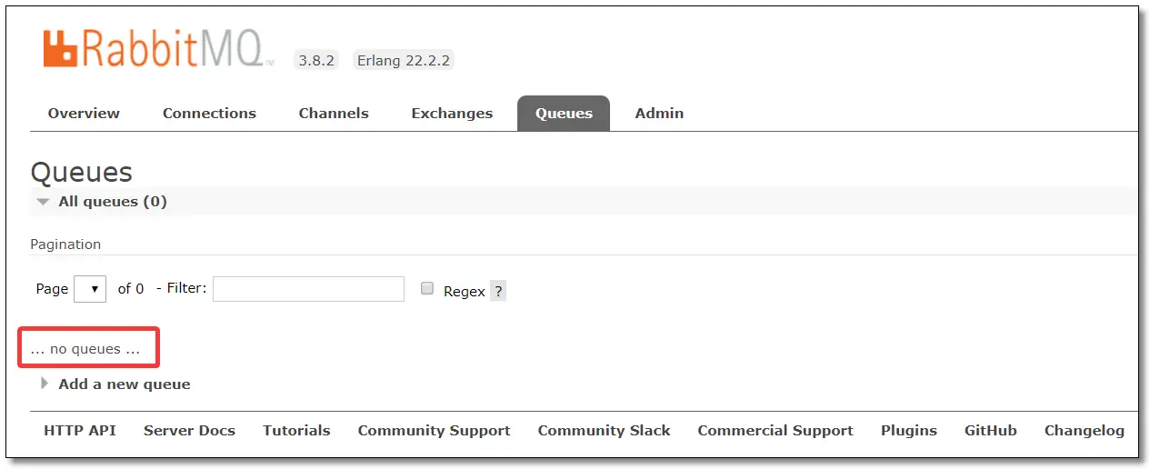 查看队列,此时无任何队列。