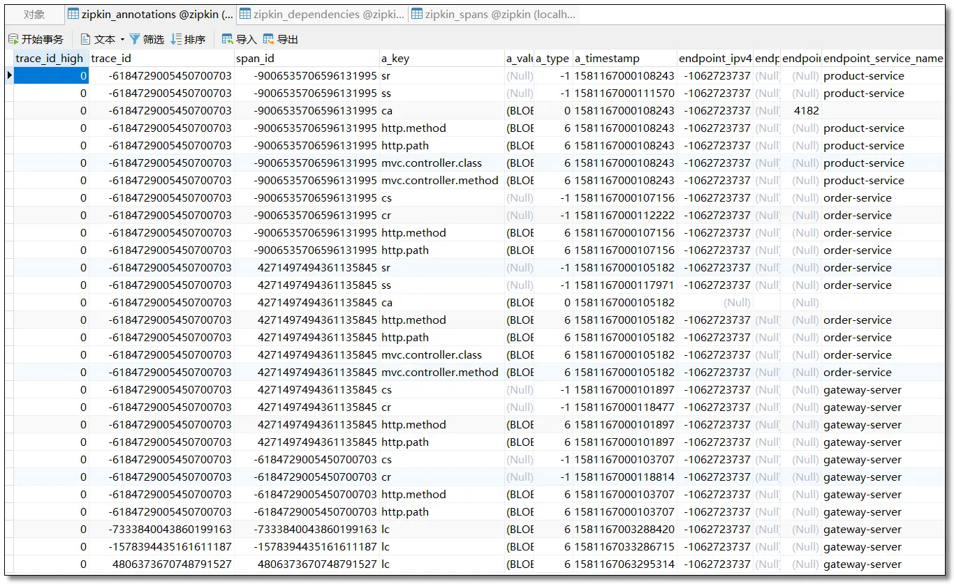 链路追踪数据被存储至 MySQL。