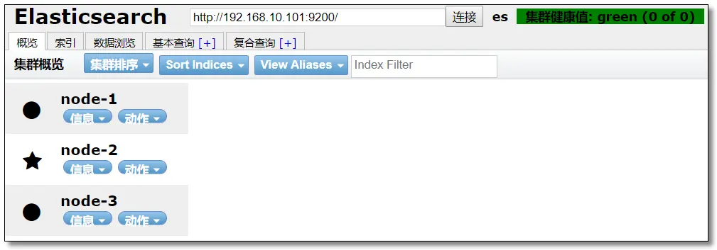 启动 head 插件,访问:http://192.168.10.101:9100/ 结果如下: