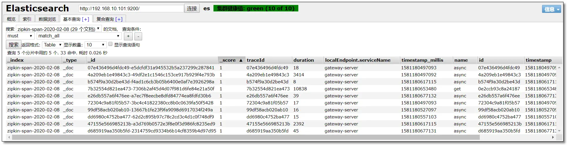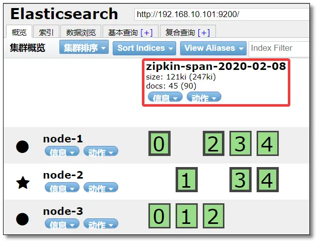访问:http://192.168.10.101:9100 可以看到已经创建好了 zipkin 索引库。