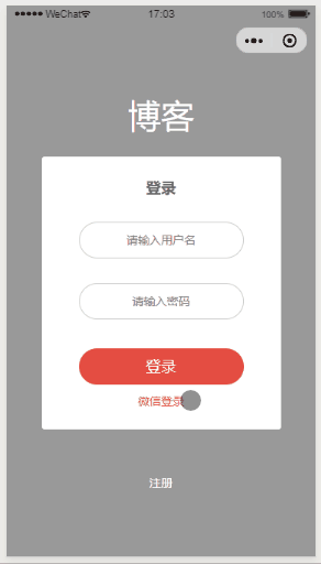 - 「登录」:输入用户名密码,同时也可以微信登陆 openid (个人项目无法获取手机号登录)。