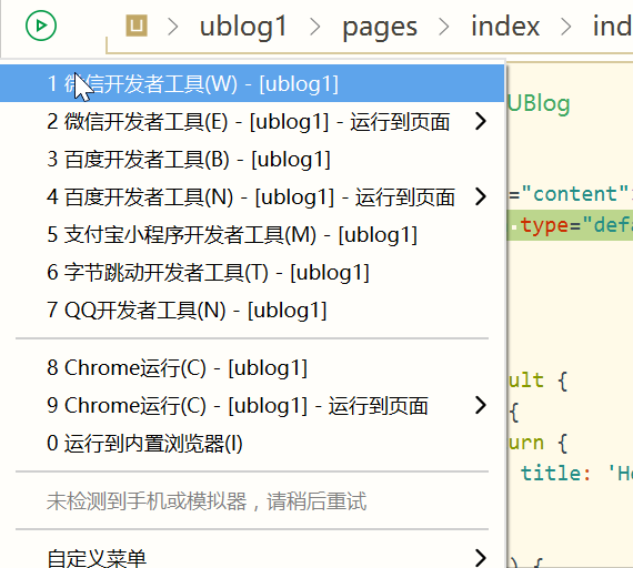 - 安装好微信开发者工具(记得在运行配置中添加微信开发者工具路径,运行会自动启动)