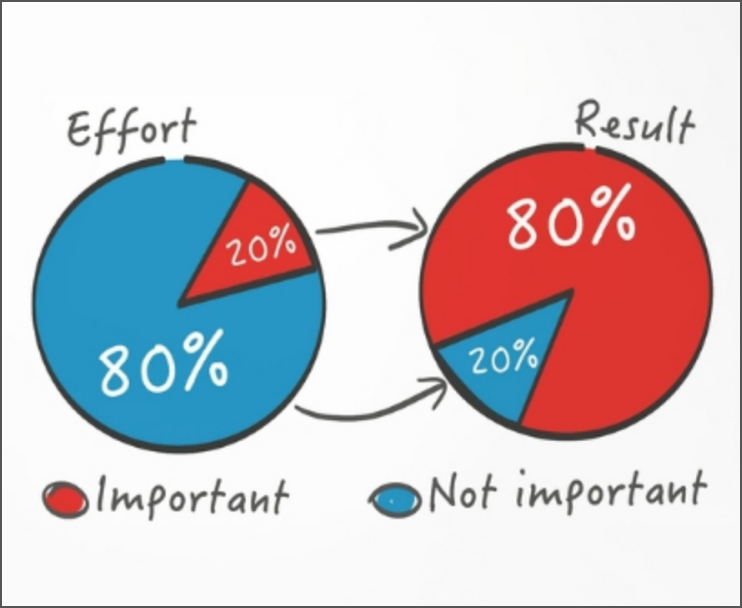 如果有2500-3000的词汇量,可以理解90%的日常英语会话、英文报纸和杂志文章以及工作场所使用的英语。也就是说知道这3000个单词可以获取正常情况下90%的信息。这就是2/8原则学词汇,学习80%的场景用到的20%的词汇,那就是最常用3000词汇;这是我在记单词过程中用到的有效方法,这个方法会事倍功半。所以,如果觉得乐词App、百词斩等词汇app时间长了就忘记了,那就将没有用的方法放弃掉,不浪费自己的时间和精力。你可以仔细看看下面的图,20%的努力获取80%的结果。