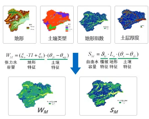 基于组合架构的松散耦合型GMKHM分布式水文模型,模型包含两个基本单位、4个产流模型与6个汇流模型;并改进基于蓄水容量曲线的混合产流模型与1/2D运动波汇流模型,提升分布式水文模型的预报性能。
