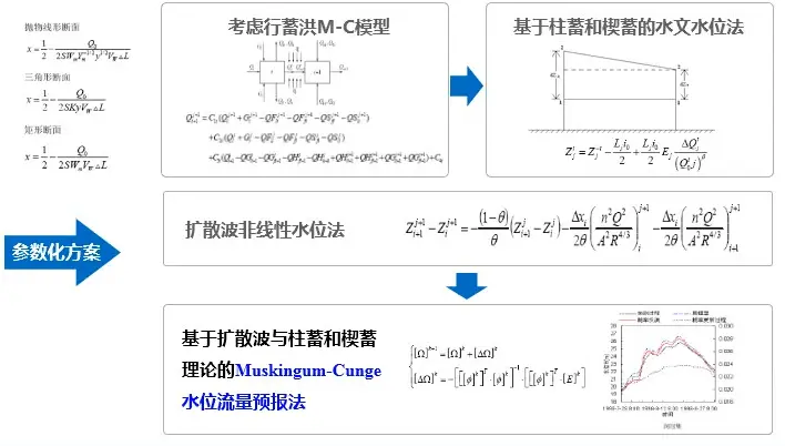 在分布式水文模型参数与下垫面定量关系中,提出了工程影响下复杂河流Muskingum-Cunge水位流量预报模型,减少水文气象服务中对水文资料的依赖。
