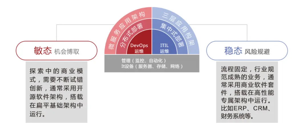 大中型企业和集团企业往往已经具备了一定的信息化基础,其主要业务大部分已经建成了相应的信息系统运行在企业内部。但随着社会快速的发展,越来越多的大型企业都在呼唤稳态和敏态的双态IT支撑能力,并且这些企业更加重视数据的安全和企业自己的数据资产,在企业协作方面,同样希望能够拥有更强的可控能力。