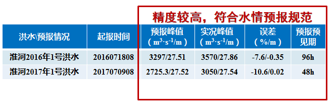 基于智能网格降水的淮河流域水文气象预报预警系统,分别提前96小时与48小时成功预报出多次淮河流域编号洪水,提升流域气象服务对防汛减灾的支撑能力。