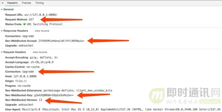 - 2)Upgrade: websocket:表示要升级到websocket协议