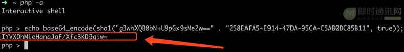 服务端响应客户端的头部信息和HTTP协议的格式是相同的,HTTP1.1协议是以换行符(\r\n)分割的,我们可以通过正则匹配解析出Sec-WebSocket-Accept的值,这和我们使用curl工具模拟get请求是一个道理。这样展示结果似乎不太直观,我们使用命令行CLI来根据上图中的Sec-WebSocket-Key和握手算法来计算一下服务端返回的Sec-WebSocket-Accept是否正确。