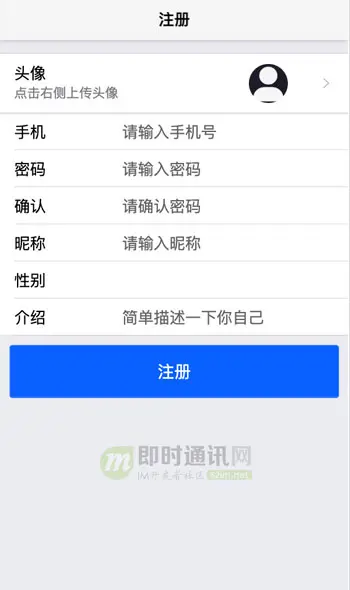 - 1)本文演示的IM系统包含基本的注册、登录、添加好友基础功能;