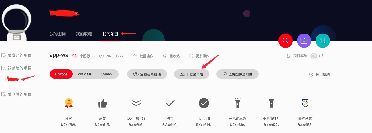 - 在 iconfont 中找到自己的项目中要使用的资源