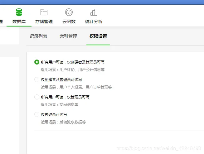 注意:如果不使用云函数去新增数据,那么因为权限问题,除管理员和创建者以外的用户在新增数据时候会因为权限不够,导致新增数据失败,所以使用云函数实现数据库数据新增,就可以实现所有用户都可以对数据库进行读写。