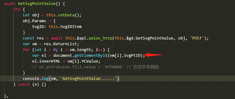 el.attributes.fill.value = '#FF0000'; //改变svg里面的id为A1的元素的填充颜色(背景颜色)
