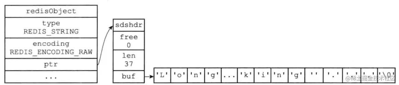 - raw编码调用两次内存分配函数来分别创建redisObject和sdrhdr结构
