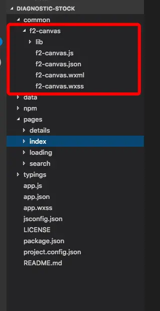 先下载上面的GitHub地址中的代码压缩包,然后把里面的f2-canvas整个文件夹放到你的项目当中,路径要记得。如图
