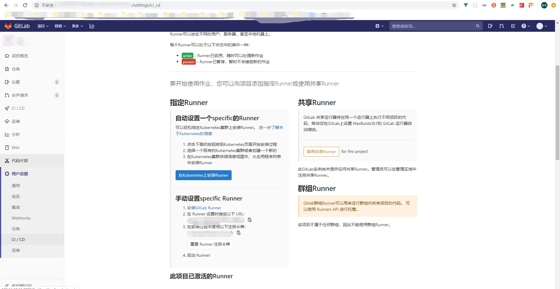 coordinator URL和token在下图中设置runner的地方复制
