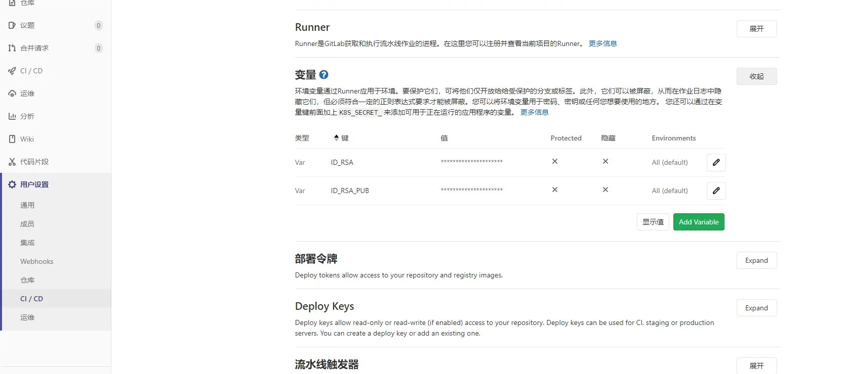 文件中$ID_RSA_PUB和$ID_RSA就是在gitlab中配置的两个变量