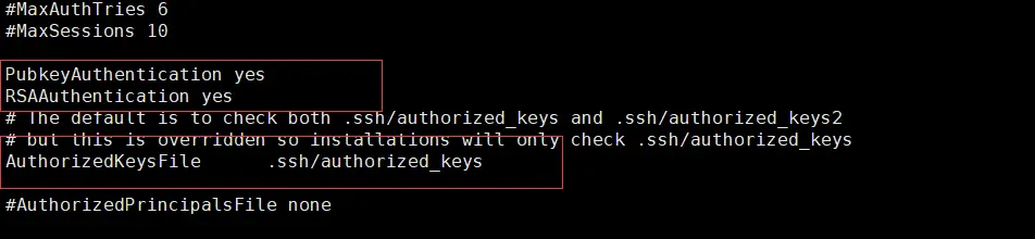 3)编辑/etc/ssh/sshd_config文件,将下图三行打开注释没有的话手动添加,重启ssh