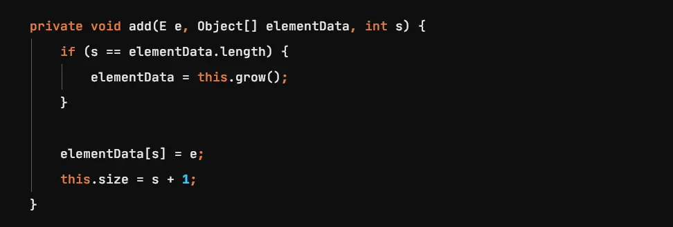 很显然 ArrayList 内部是通过数据来实现的,而数据就存储在 elementData 数组中,且允许存储的最大元素数是 MAX_ARRAY_SIZE。