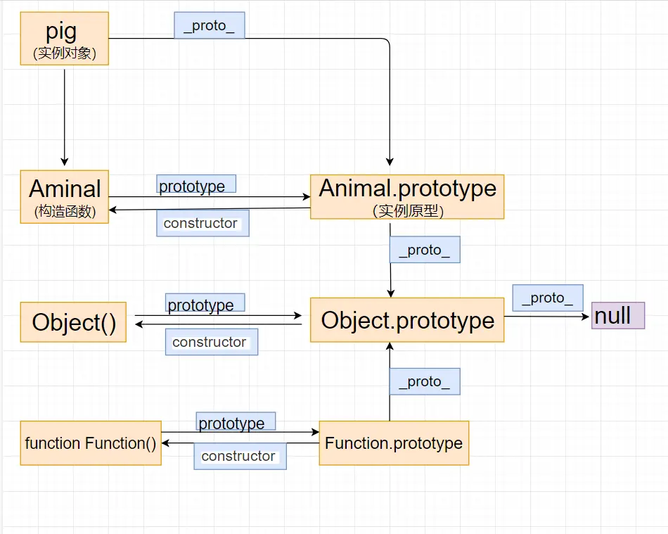 这里我们可以看出,pig.name先开始从pig对象中查找,找到的时候返回了Jony,找不就从pig的原型_proto_即Animal.prototype中找。