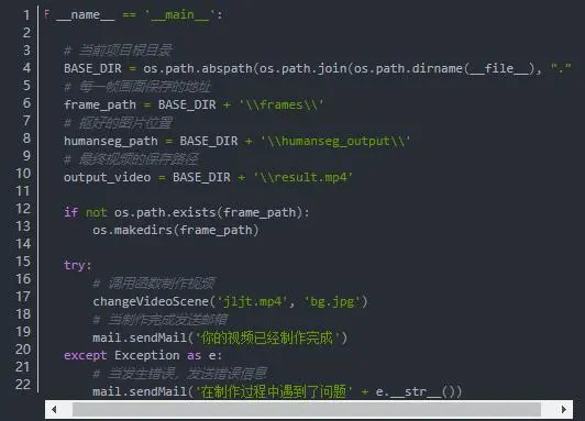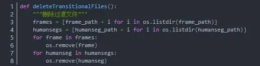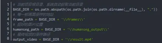 (4)对每一帧画面进行场景切换 简单来说就是将抠好的图片和背景图片合并,我们知道抠好的图片都在humanseg_output目录,这也就是为什么最开始要准备相应的变量存储该目录的原因: