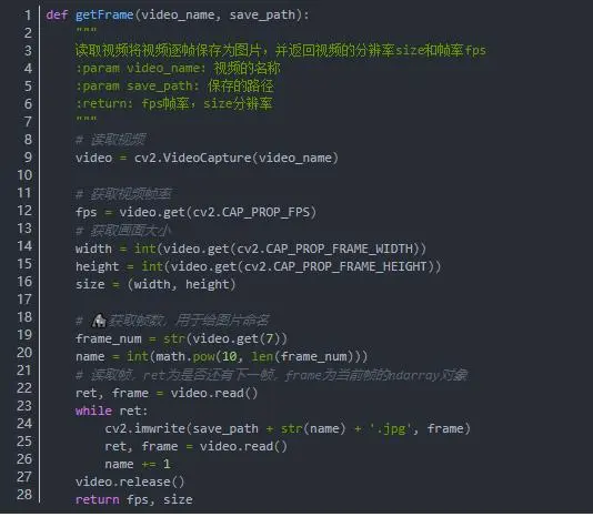 我们都知道,视频是有一帧一帧的画面组成的,每一帧都是一张图片,我们要实现对视频的修改就需要对视屏中每一帧画面进行修改。所以在最开始,我们需要获取视频每一帧画面。