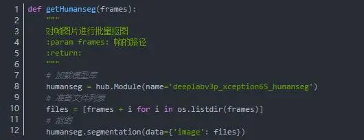 批量抠图需要用到paddlehub中的模型库,代码很简单,这里就不多说了: