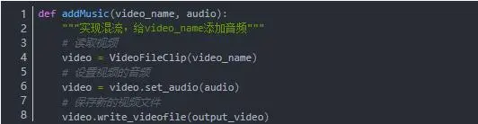 (7)给新视频设置音频 这里同样使用moviepy,传入视频名称和音频对象进行混流: