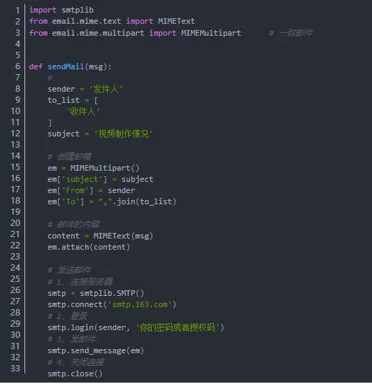 里面的邮箱我是直接写死了,大家可以自由发挥。为了方便,推荐发件人使用163邮箱,收件人使用QQ邮箱。另外在登录的时候直接使用密码比较方便,但是有安全隐患。