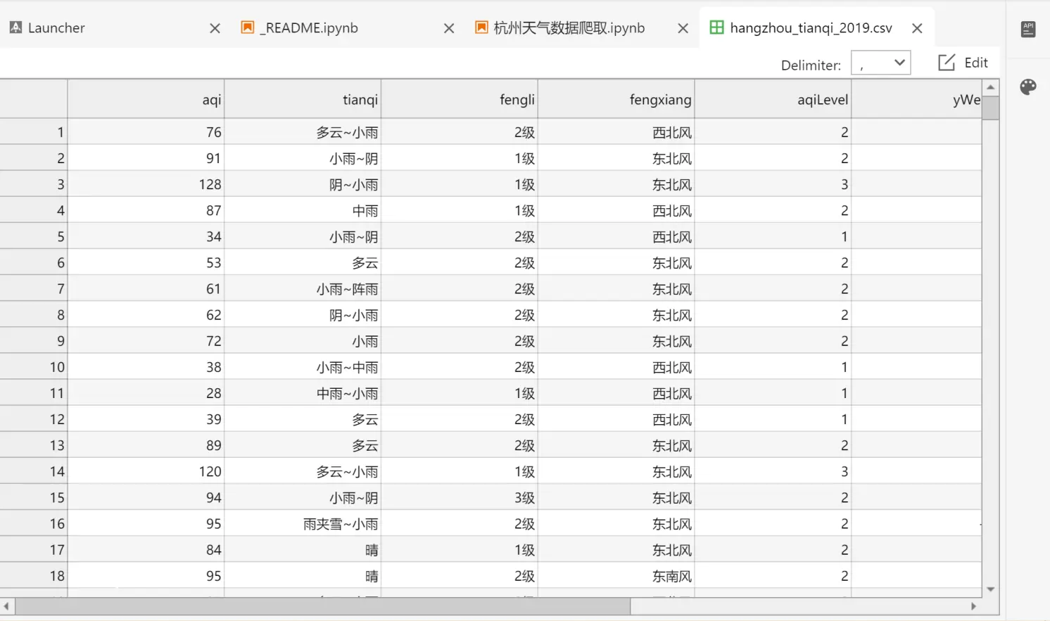 with open('./hangzhou_tianqi_2019.csv', 'w', newline='', encoding='utf-8') as csv_file: