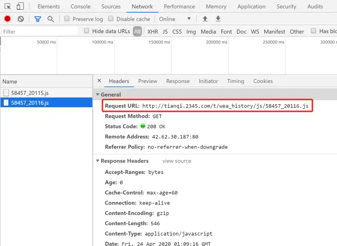 仔细分析后,我们发现每改变一次年月,该页面就动态加载一个 js 文件。点开对应的 js 链接,我们就可以发现每个月份的历史数据是通过请求一个 js 数据文件获取的。