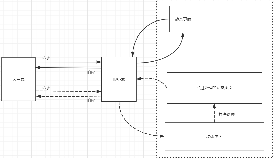 静态web的请求只是单纯地从服务器上获取到静态页面,然后返回给用户。