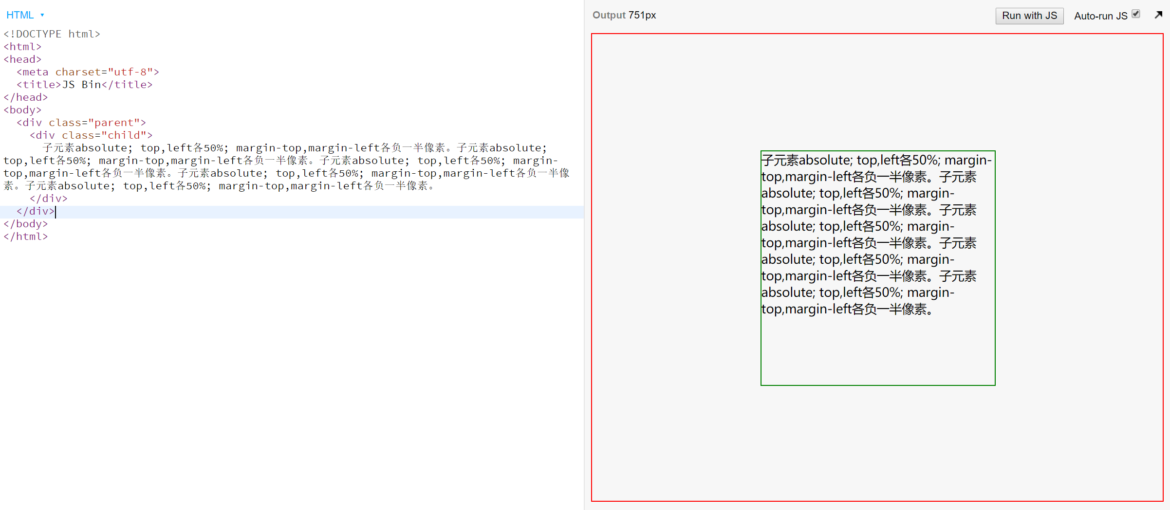 3、子元素absolute; top,left各50%; margin-top,margin-left各负一半像素。