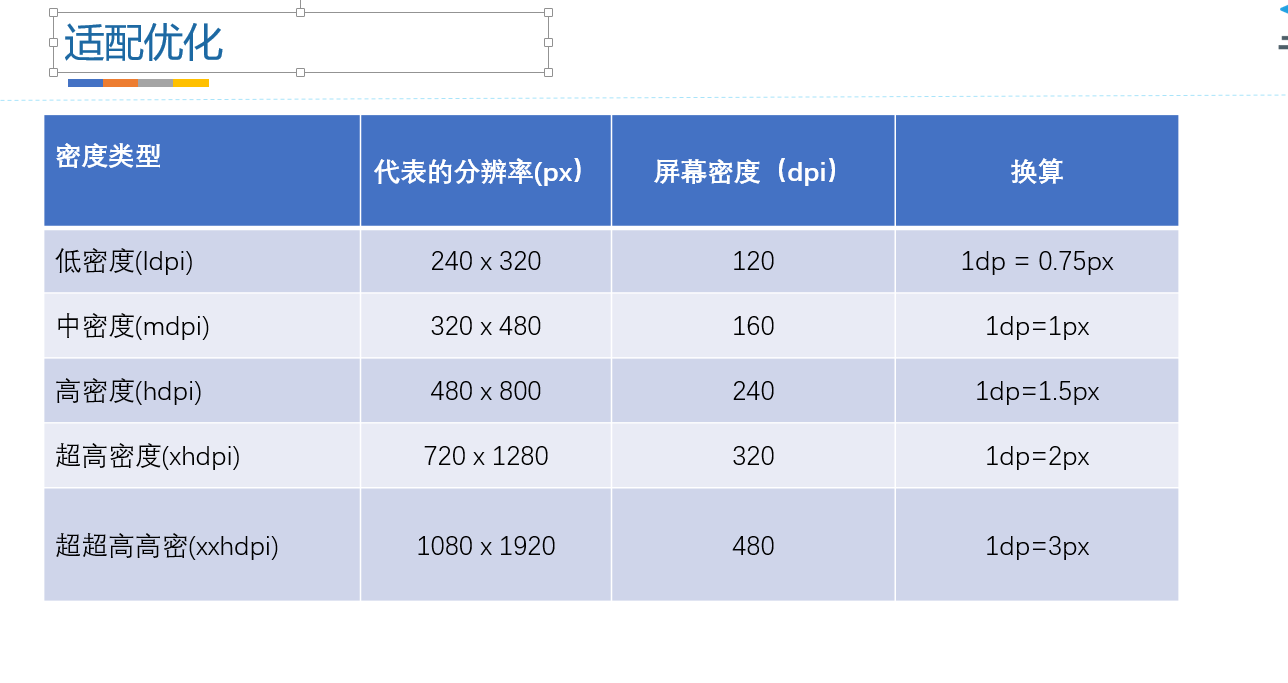 由此我们可以看出屏幕适配和我们手机的尺寸和屏幕的密度有着不可分开的关系,android各大手机厂商,对于屏幕的密度这一块可能是买点的原因,常常不准,所以谷歌为我们提供的dp也不是很好用