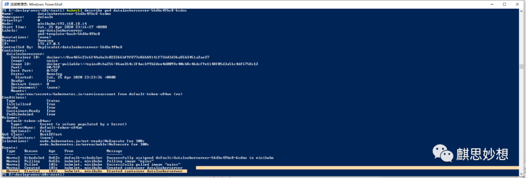 使用, kubectl describe pod datalookerserver-56dbc49bc8-6sdms可以查看具体pod的具体信息